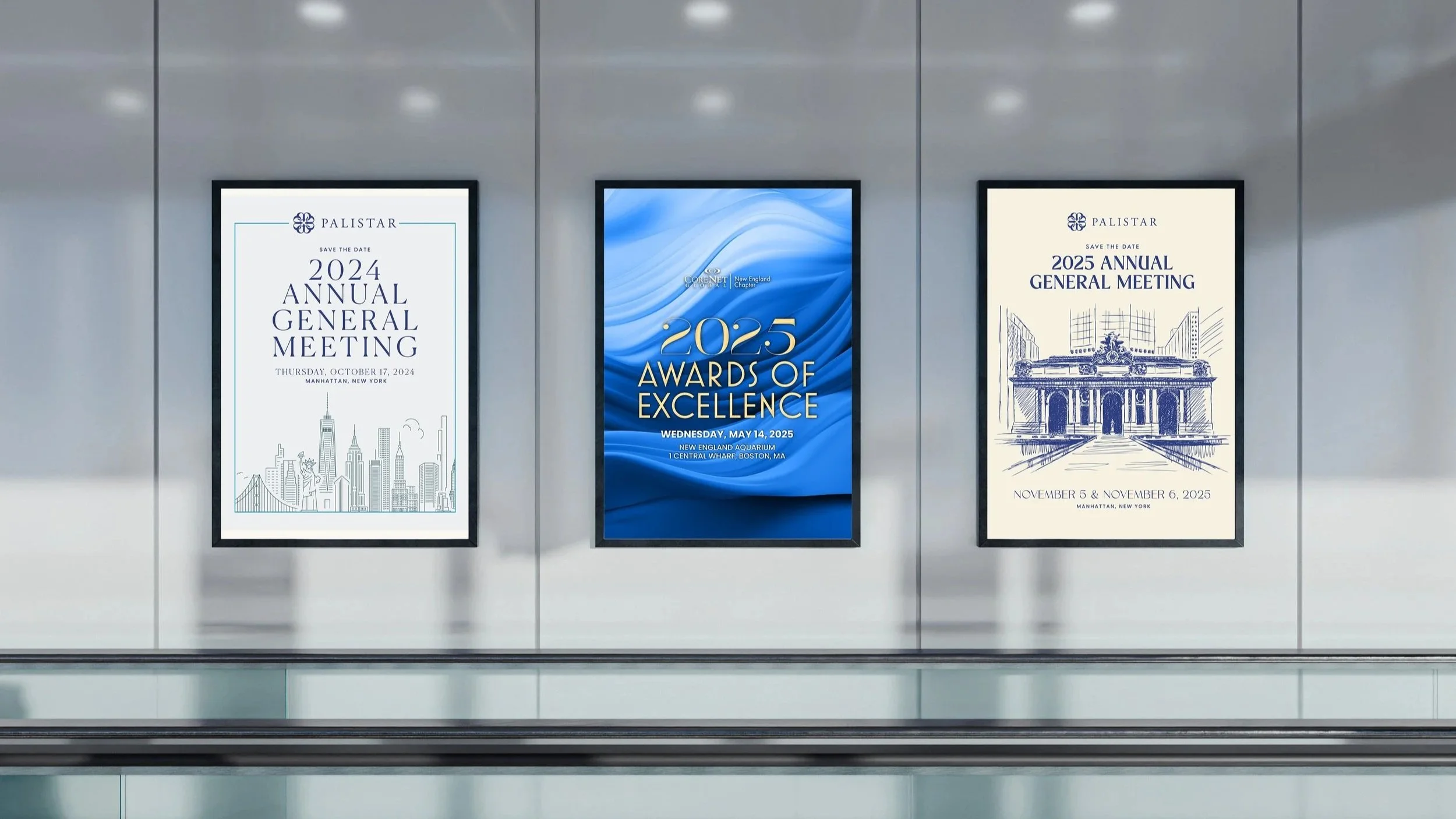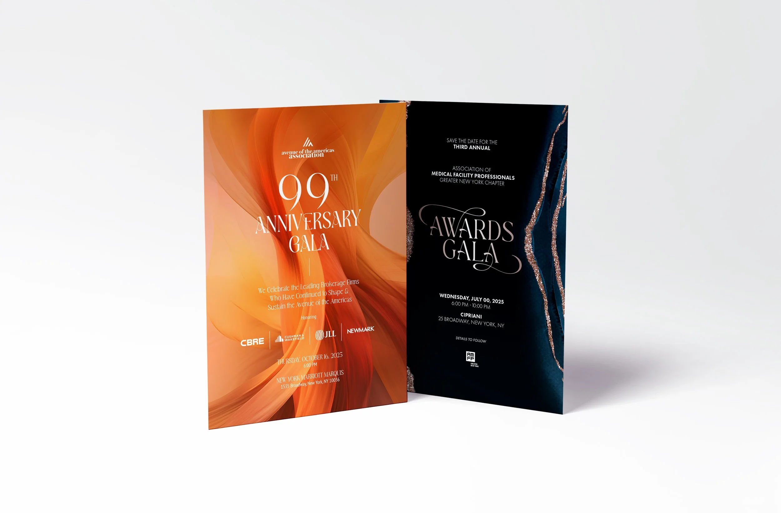 Creative direction and design for high-profile corporate and industry events, developing custom visual identities that translate seamlessly across print and digital platforms. Each event is approached as its own brand, tailored to its audience and purpose, translating established themes into cohesive visual concepts or creating original concepts when no theme is provided. Through curated imagery, refined color palettes, thoughtful typography, and elevated graphic elements, I ensure every design maintains consistency and impact